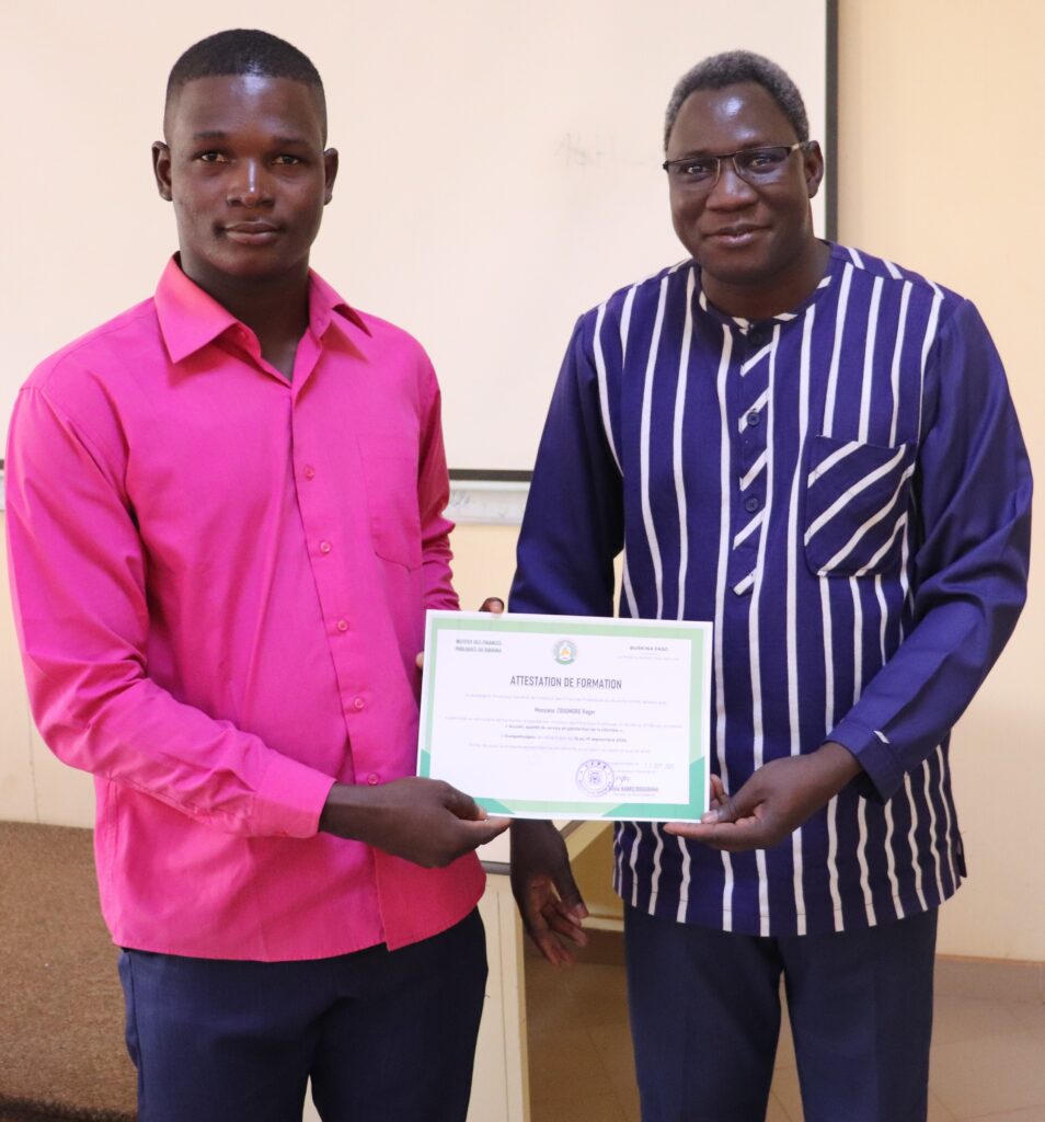 Animée par M. Ousmane SAWADOGO, spécialiste en banque-finance, et M. Ibrahima TOU, Inspecteur du Trésor, la session sur les « Techniques bancaires » a permis aux participants d’approfondir leurs compétences sur les opérations bancaires. Parallèlement, la session sur la « Qualité de service, accueil et satisfaction du client », conduite par M. Marc KABORÉ, Conseiller technique du Directeur général de l’IFPB, et M. Noufou YAMPA, Inspecteur du Trésor, a renforcé les pratiques professionnelles orientées vers l’usager.